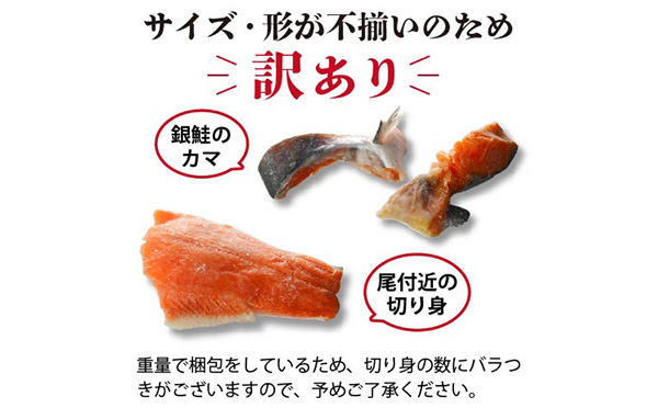 【訳あり】三陸産銀鮭切り身 サイズ不揃い無塩 2.2kg